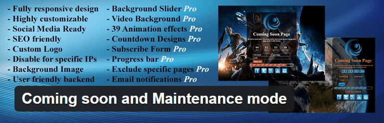 This plugin has more than 8,000 active installs and an average 4,6 out of 5 stars rating. It works best as a Coming Soon page, since there is no option to switch between server statuses. However, you can use it for maintenance mode, if you don’t mind search engine bots crawling your website while under maintenance.