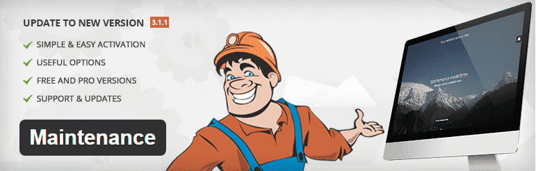 Maintenance Mode is a very simple free plugin, which uses WordPress’ native core function to quickly and efficiently make the website unavailable for visitors. It doesn’t serve a 503-status to search engine bots, which means they are allowed to crawl the site while undergoing maintenance.