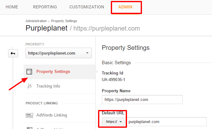 - In your Admin tab » click on Property settings