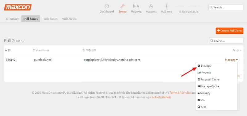 - Go to the Zones tab in your MAXCDN account.