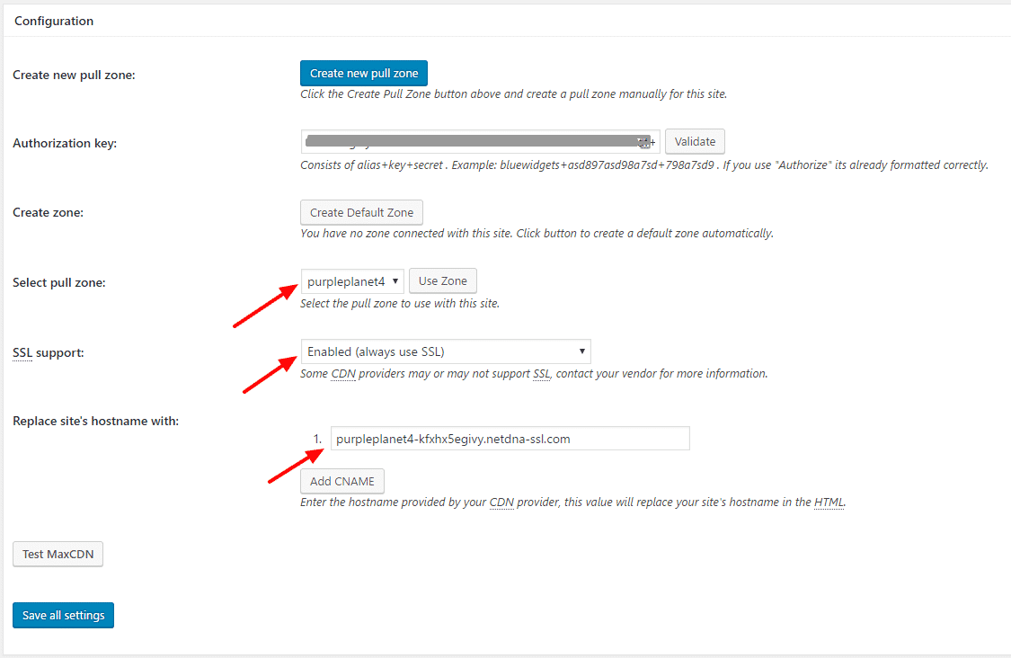 As I mentioned before, we are using the W3 Total Cache plugin. The last step was to update information in the CDN tab of the plugin, and enable the CDN in General Settings.